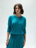 Bluză de siluetă dreaptă. Cu răscroiala gâtului ovală la baza gâtului prelucrat cu bentiță, cu linia umerală alungită cu manșetă lată, deci mâneca poate fi considerată 3/4.
