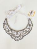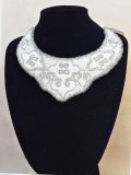 Colier brodat manual cu pietricele – o piesă de bijuterie textilă care îmbină arta broderiei cu rafinamentul detaliilor lucrate de mână.