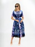 Rochie lungă, din voal fin și ușor, cu imprimeuri atent alese care pun în valoare silueta. Topul ușor evazat, cu mânecă scurtă și gât bărcuță, alungește elegant linia gâtului, iar fusta amplă, cu multiple pliuțe, conferă lejeritate și rafinament.