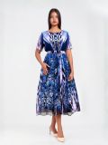 | Descriere | Rochie lungă, din voal fin și ușor, cu imprimeuri atent alese care pun în valoare silueta. Topul ușor evazat, cu mânecă scurtă și gât bărcuță, alungește elegant linia gâtului, iar fusta amplă, cu multiple pliuțe, conferă lejeritate și rafinament. |