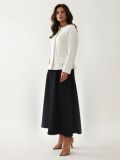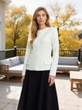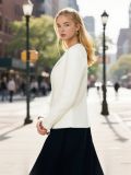 Textura fină a tweedului, combinată cu puritatea culorii albe, conferă un look luminos, curat și sofisticat.
