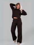 Setul tricotat din fir premium de lână, în nuanța intensă a ciocolatei, redefinește eleganța casual prin confort, textură și echilibru.